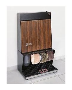 Automatic shoe shine machine in wood with foot sensor and timer. Available in different colors.