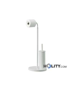 Column holder and toilet brush holder in metal, available in white lacquer finish or polished chrome