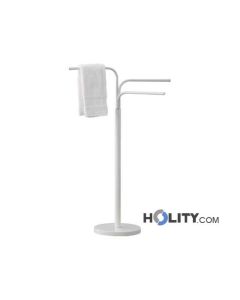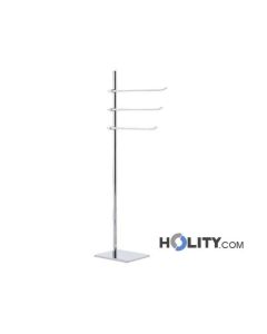 Floor towel holder with three metal arms available in white lacquer finish and polished chrome