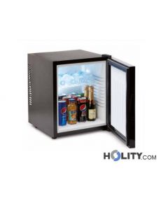 40-liter eco-friendly glass door hotel minibar, silent thermoelectric system, class F, smoked glass door and dim. 566x441x432 (h x w x d) mm.