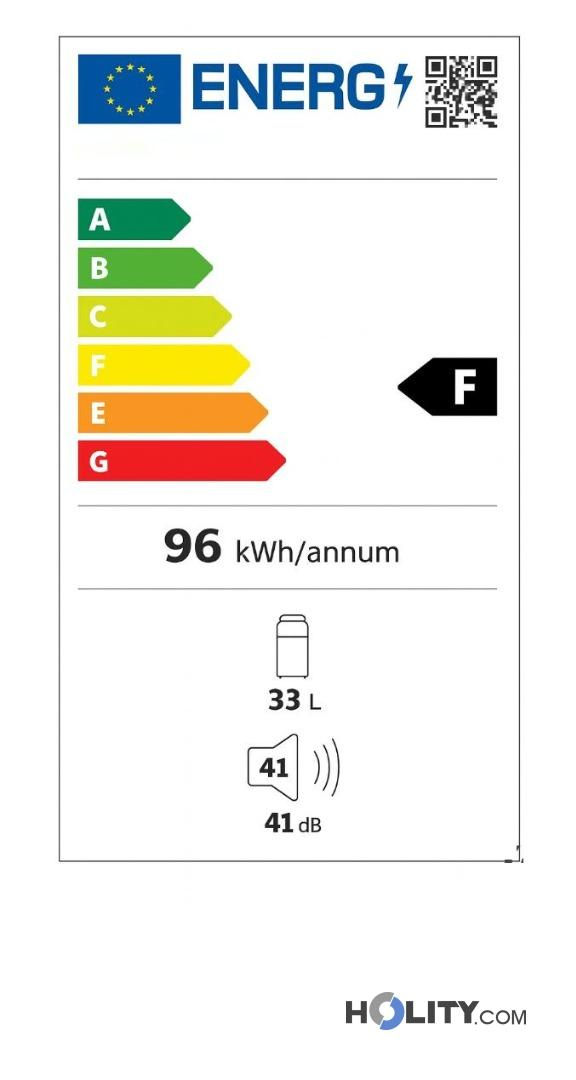 Black 31 L minibar, 0 dB thermoelectric technology for maximum silence. Reversible door, free-standing or built-in installation. Dim. W41.9xD39.7xH54 cm.