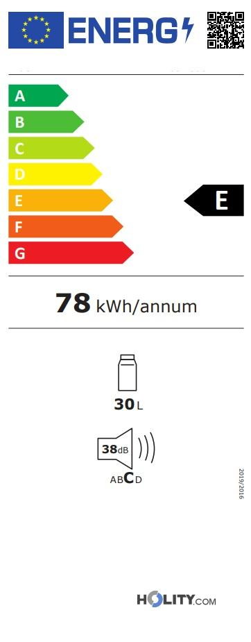 Professional 30 lt minibar with glass door and compressor technology. Class E, quiet (38 dB) and eco-friendly thanks to R600a gas.