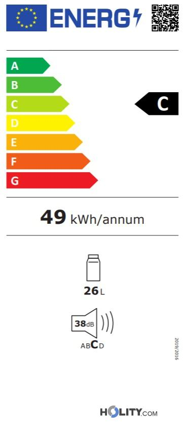 35 lt compressor minibar in class C. Silent (38 dB), eco-friendly with R600a gas and reversible door. Ideal for energy saving in hotels.