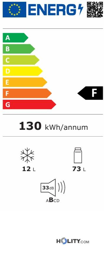 85 lt minibar with 12.8 lt freezer compartment. Made in Italy compressor system, reversible door and interchangeable panel. Dimensions 48.5x48.5x78.9h cm.