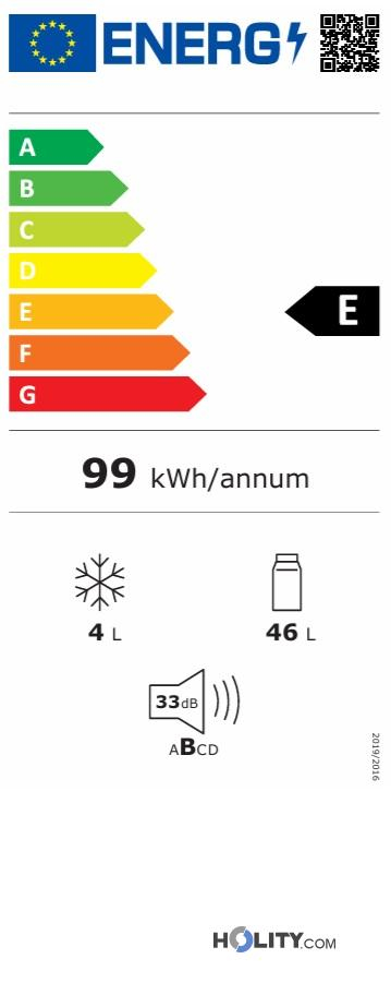Minibar 50 lt h3436 with 3.6 lt freezer compartment and Made in Italy compressor system. Energy class E, reversible and panelable black door. W40xD41.5xH54.4 cm.