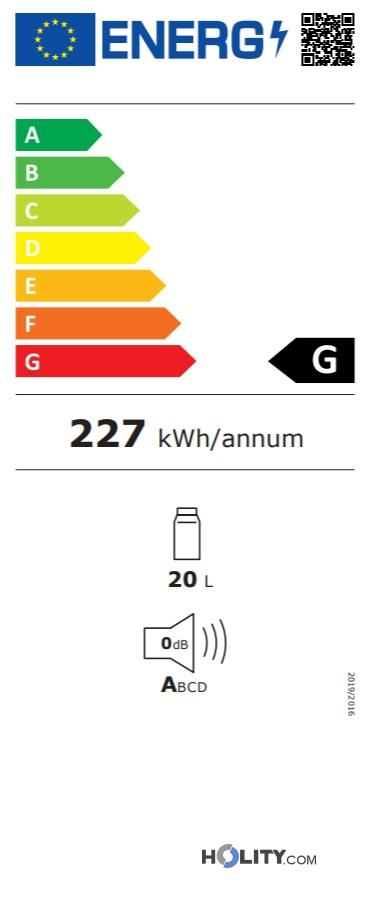 The reversible glass door not only elevates the room’s design but also serves as an effective visual marketing tool, allowing guests to view the selection of drinks and snacks without having to open the compartment, thus optimizing thermal management. The cooling system uses R600a gas, ensuring a low environmental impact and eco-friendly construction. Thanks to its compact dimensions and the possibility of built-in or free-standing installation, it adapts with extreme ease to any project layout, maintaining optimized consumption management compared to older generation systems.