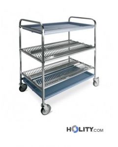 3-tier dish draining trolley with drip tray. Frame material: AISI 304 stainless steel. Dimensions: W.87 x D. 62 x h.121 cm.