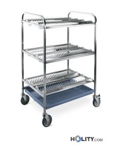 Trolley with 2 dish draining shelves and 1 glass draining shelf. Equipped with drip tray. For plates Ø cm 16÷26.