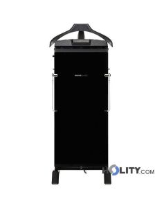 Trouser Press with temostato and a specific part for removing creases the level of the knee. Available in several finishes.
